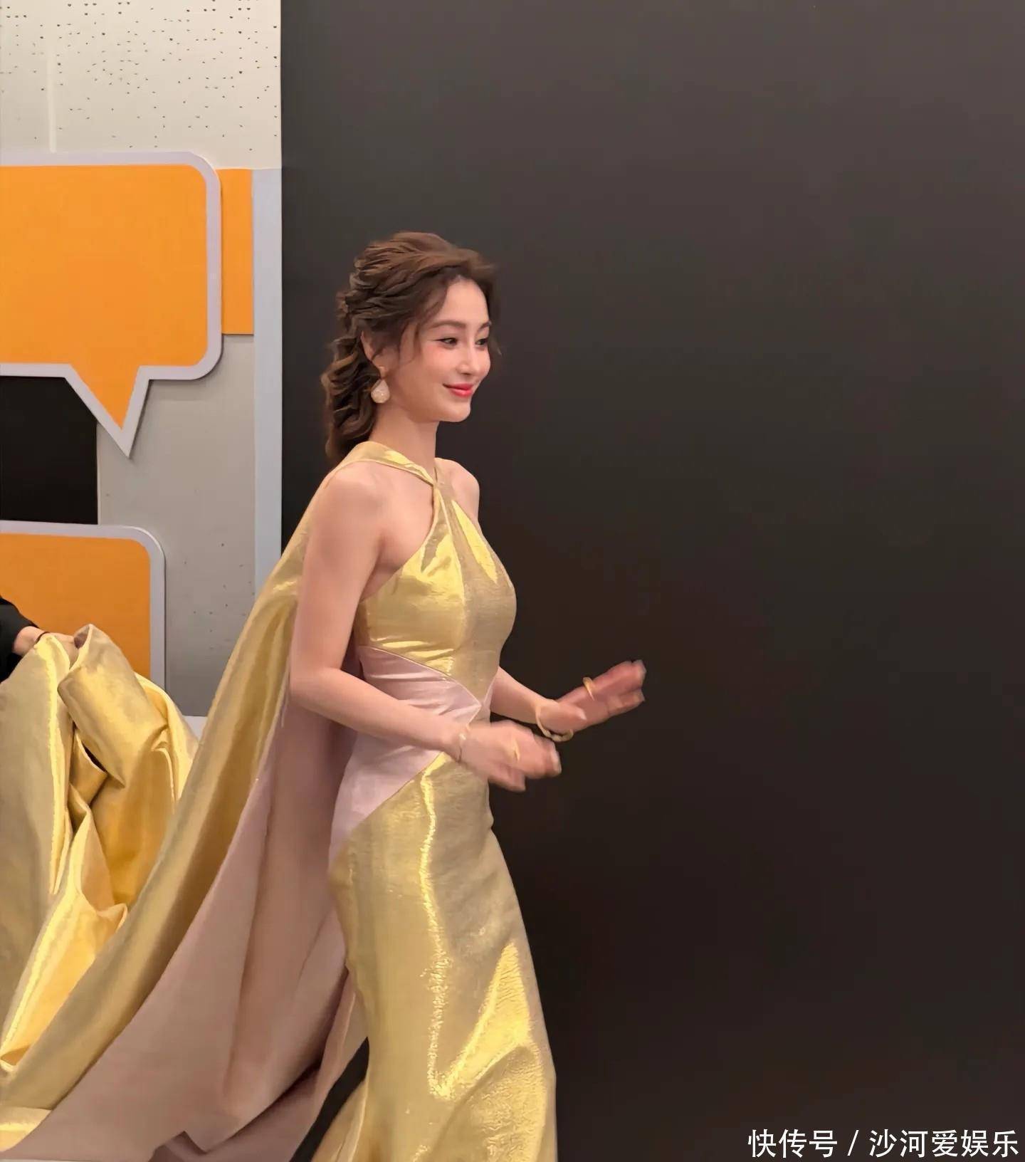 金色长裙曳地,麻花辫轻扬,Angelababy站在红毯中央微微一笑,镜头瞬间被点燃。